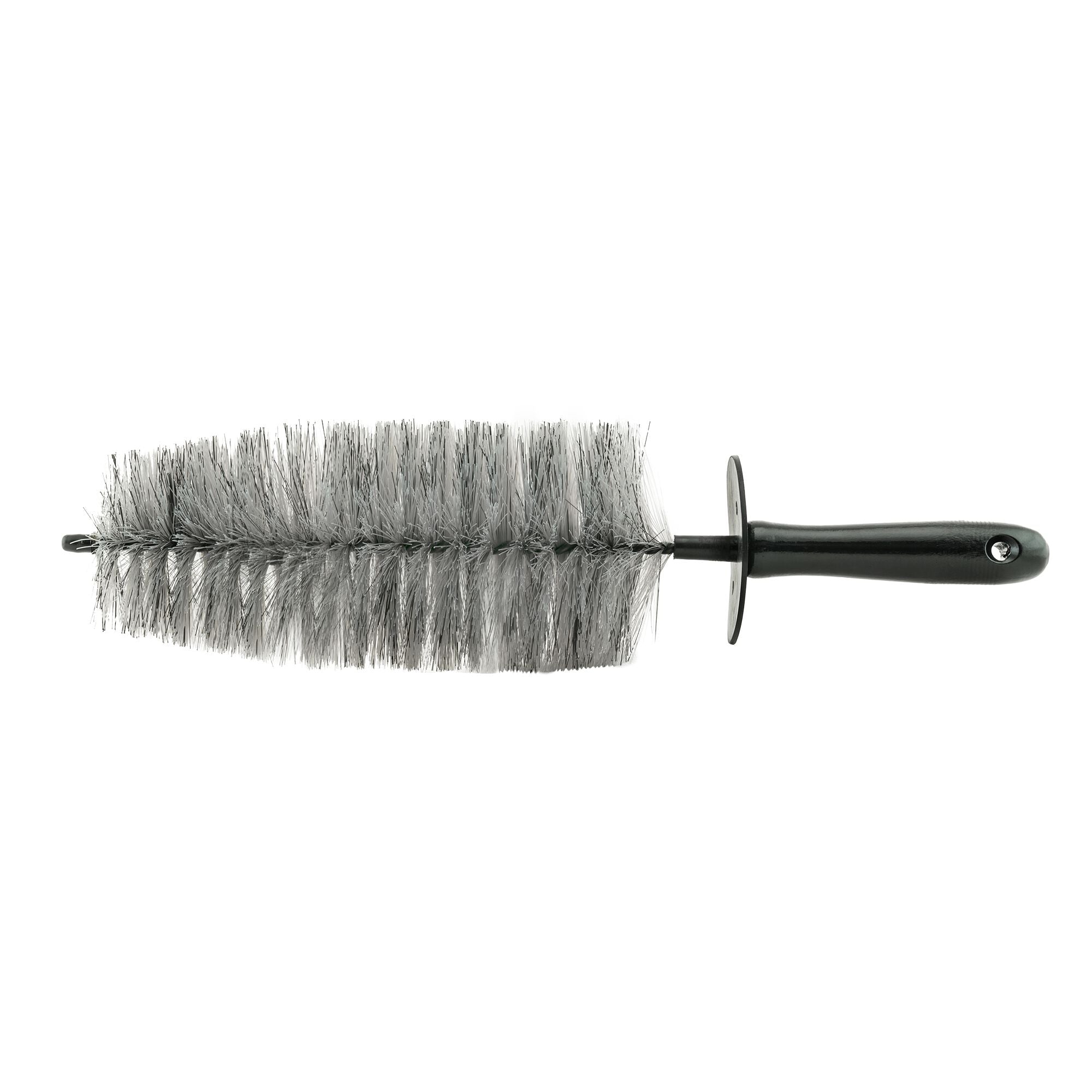 Bendable rod that can be shaped to fit around brake calipers, into tight spaces, and behind wheel spokes, ensuring thorough cleaning of intricate areas.Extra-long 17” brush has soft bristles that gently scrub and lift dirt and grime from wheels, exhaust tips, engine bays, and other compact areas.Soft rubberized handle and knuckle guard to protect your hands from sharp dust shields and spokes, making it comfortable and safe to use.